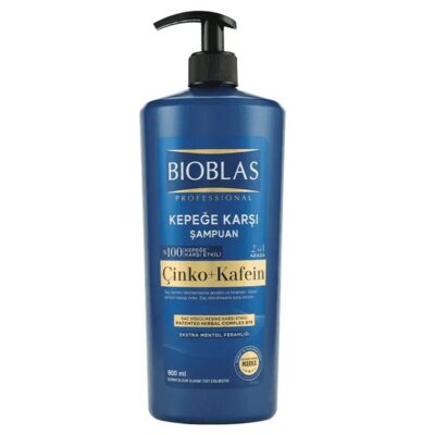 شامپو مو ضد شوره بیوبلاس حاوی زینک و کافئین عصاره منتول bioblas caffeine and zinc anti dandruff حجم 900 میل