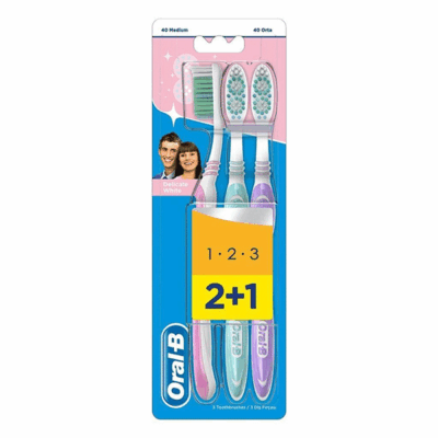 مسواک اورال بی 1.2.3 Oral-B Delicate White با برس متوسط بسته 3 عددی