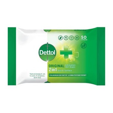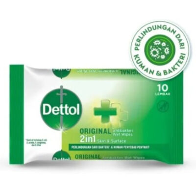 دستمال مرطوب و ضدعفونی کننده دتول Detol مدل 2 در 1 مناسب سطوح و پوست تعداد 10 عدد