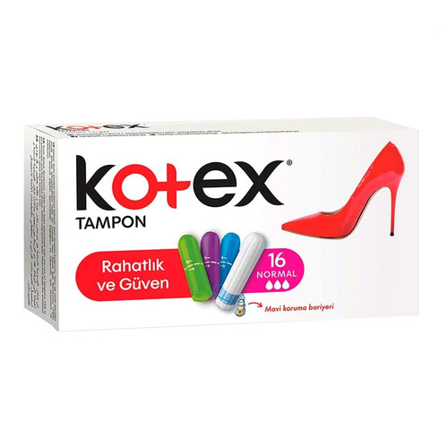 تامپون کوتکس kotex سایز نرمال بسته 16 عددی محصولی از شرکت آمریکایی کوتکس kotex و تولید ترکیه.