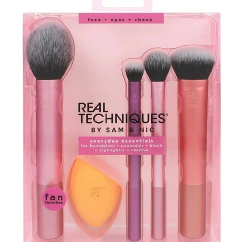 ست براش و پد آرایشی Everyday Essentials ریل تکنیک از 5 محصول شگفت انگیز تشکیل شده که نه تنها برای آرایش کل صورت و چشم کافی هستند، بلکه تمامی محصولات پودری، کرمی و مایع را به خوبی روی پوست پخش کرده و ظاهری کاملا طبیعی و حرفهای به آرایش شما میبخشند.