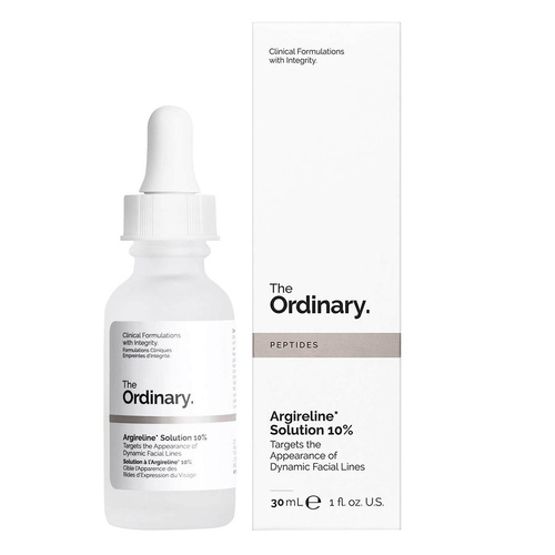 محصول اوردینری با نام سرم آرژیرلین 10% (Argireline)، که به عنوان یک ماده ضد چروک شناخته میشود، حاوی پپتید ترکیبی است که در کاهش خطوط و چروکهای صورت مؤثر است. عملکرد اصلی سرم آرژیرلین بر اساس این است که با کاهش انقباض عضلات صورت، خطوط و چروکهای ناشی از انقباض عضلات را کاهش میدهد. به عنوان یک پپتید، آرژیرلین به شکل یک لایه نازک بر روی پوست قرار میگیرد و در نتیجه انقباض عضلات کمتری ایجاد میشود. این محصول به همین دلیل برای جلوگیری از تشدید چین و چروکها مناسب است.