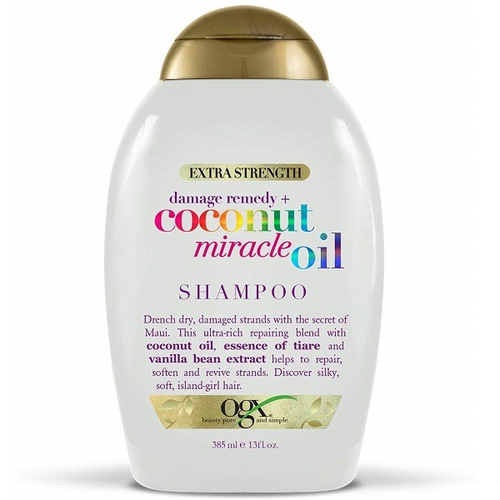 شامپو روغن نارگیل میراکل ogx محصول مناسب برای شستشو و بهبود موهای ضخیمی است که خشک یا آسیب‌دیده هستند. این محصول معجزه‌آسا، بافت درشت تارهای مو را با قدرت عالی مرطوب و نرم کرده و به ترمیم آسیب وارده به موها کمک می‌کند. همچنین می‌تواند موهای زبر و وز را که حالتی آشفته به خود می‌گیرند، ضمن تمیزکردن از چربی اضافه و آلودگی، نرم و ابریشمی کند. شامپو معجزه نارگیل او جی ایکس با روغن نارگیل و عصاره گل‌های یاس جزایر فرانسوی غنی شده است.