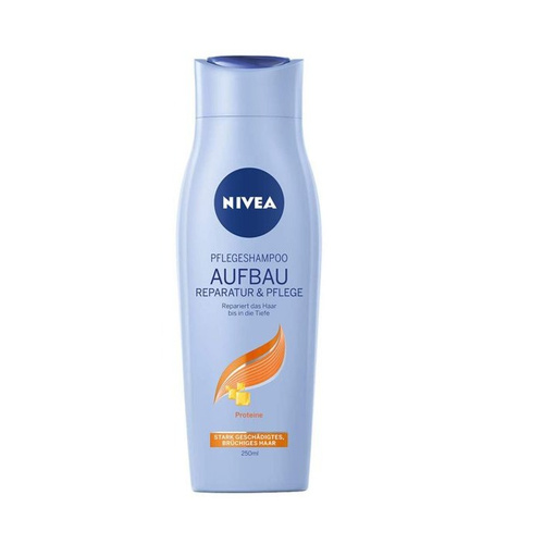 شامپو ترمیم کننده نیوا Nivea Aufbau Reparatur and pflege حاوی پروتئین بوده و ترمیم کننده و احیا کننده شادابی موهای آسیب دیده و خشک می باشد.