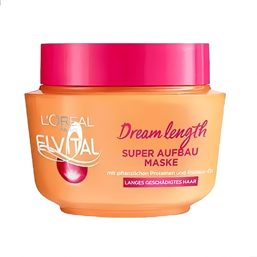 ماسک مو تقویت کننده و ترمیم کننده لورال پاریس مدل Dream Lengths حاوی کراتین و روغن کرچک مناسب موهای آسیب دیده و بلند است.