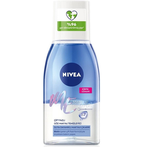 میسلار دو فاز پاک کننده آرایش دور چشم نیوآ NIVEA مدل ME حاوی ویتامین B7 و بیوتین و قدرت پاکسازی بالا.