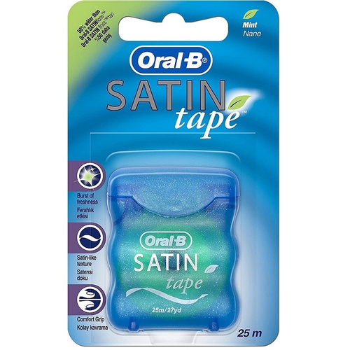 نخ دندان اورال بی مدل ساتین تیپ SATIN یکی از محصولات باکیفیت و کاربردی این برند مشهور است. این نخ دندان دارای طولی برابر 25 متر است نخ دندان اورال بی ساتین فواصل به هم چسبیده بین دندان ها را به آسانی تمیز می کند و مواد غذایی باقی مانده بین دندان را خارج می کند. پلاک ها و باکتری ها را از فضای بین دندان و شیار لثه بر می دارد و به راحتی بین دندان ها می لغزد. نخ دندان ساتین اورال بی دارای بافت ابریشمی است که به راحتی دور انگشتان دست قرار می گیرد و موجبات استفاده آسان را فراهم می کند، همچنین در صورت مرطوب شدن به آسانی قابل کنترل می باشد، عصاره نعنای موجود در آن موجب طراوت بیشتر دهان می شود.