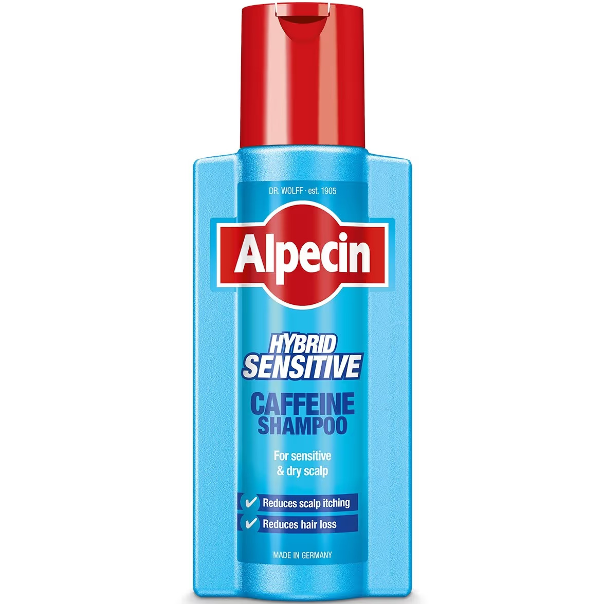 شامپو ضدریزش و آبرسان هیبرید کافئین آلپسین Alpecin Hybrid Caffeine دارای فرمول پیشرفته توسعه یافته در آزمایشگاه دکتر ولف مناسب برای تقویت موهای ضعیف و نازک و کاهش ریزش مو می باشد. شامپو کافئین دارای دو عملکرد همزمان تقویت رشد مو و آبرسانی و تسکین پوست سر حساس، خشک و دارای خارش می باشد و برای مراقبت ملایم پوست سر حاوی روغن کرچک، پروتئین جوانه گندم و مواد موثر آبرسان می باشد. شامپو آلپسین دارای ترکیب انحصاری ثبت شده جهت فعالسازی فرایند رشد مو است، این فرایند همراه با افزایش ضخامت و استحکام موها همراه است. شامپو کافئین آلپسین پس از سال ها تحقیق بر روی الگوی رشد مو، موثرترین و دقیق ترین فرمول و دوز مواد تشکیل دهنده را جهت جلوگیری از ریزش و افزایش ضخامت موها در خود جای داده است. این ترکیب علاوه کافئین جهت تقویت و انرژی بخشی مو، حاوی پنتنول (پرو ویتامین B5) و نیاسین آمید (پرو ویتامین B3) می باشد.
