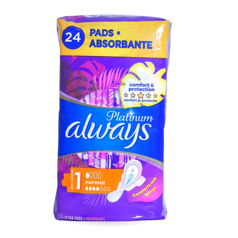 نوار بهداشتی آلویز always platinum سایز نرمال بسته 24 عددی