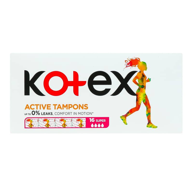 تامپون استخری اکتیو سوپر ۴ قطره کوتکس Kotex active super pool tampon حجم ۱۶ عددی