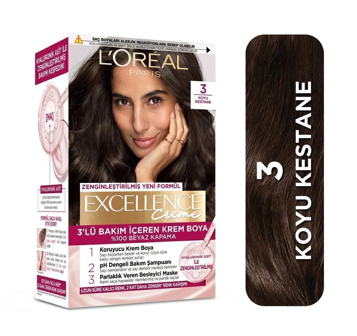 رنگ مو لورآل شاه بلوط تیره L’Oreal Excellence شماره 3