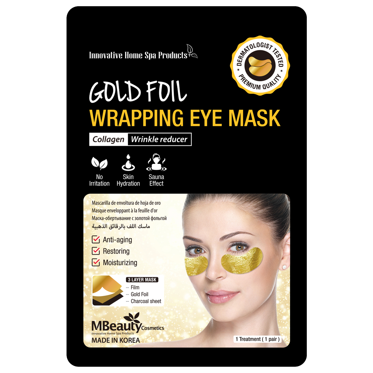 ماسک دور چشم امبیوتی فویل طلایی MBeauty Gold Foil Wrapping Eye Mask بسته 3 عددی