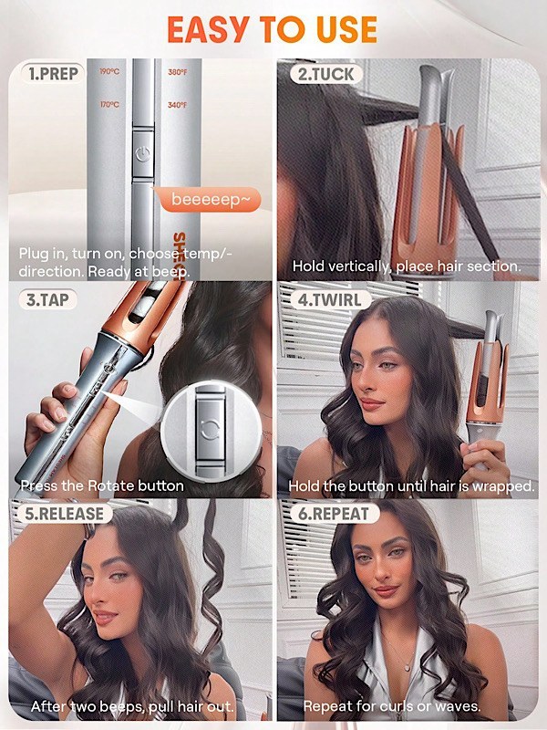 It-Curl One-Touch Instant Curler دارای طراحی یکدکمهای برای فر کردن موها است. این طراحی به کاربران اجازه میدهد تا تنها با فشار دادن یک دکمه، موهای خود را به راحتی فر کنند. این ویژگی به خصوص برای مبتدیان بسیار مناسب است، زیرا استفاده از دستگاه را بسیار ساده میکند.