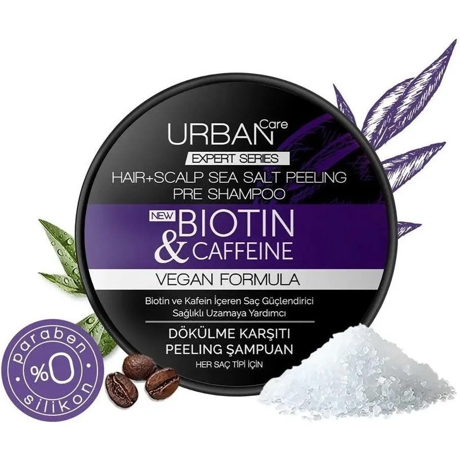 Urban Care Biotin & Caffeine Hair Scalp sea salt peeling pre shampoo Vegan Formula: